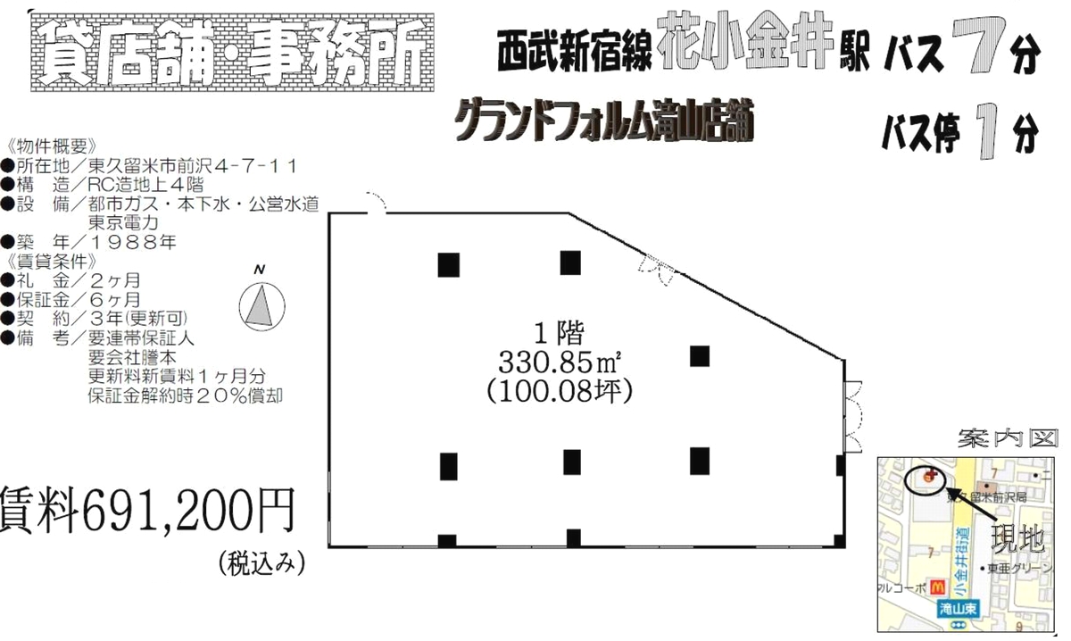 賃料(坪・円) 坪 6,912 円 (総額 691,200 円)