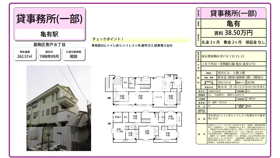 東京都葛飾区青戸8-21-12 (亀有) 荒井ビル 詳細データ