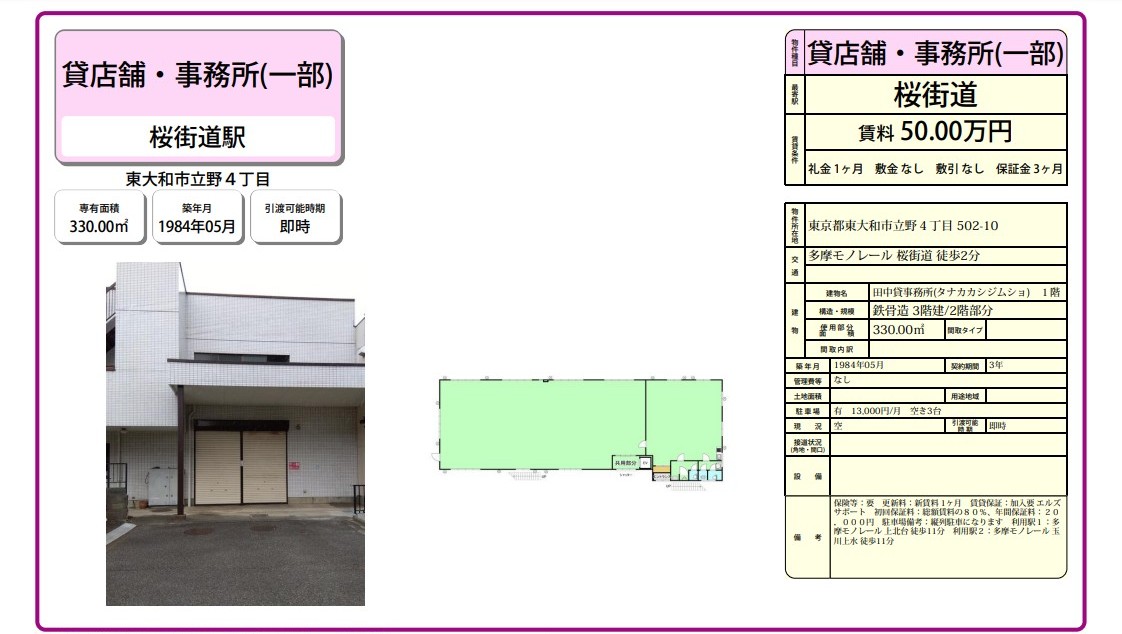 東京都東大和市立野4-502-10 (桜街道) 田中貸事務所(タナカカシジムショ) 詳細データ
