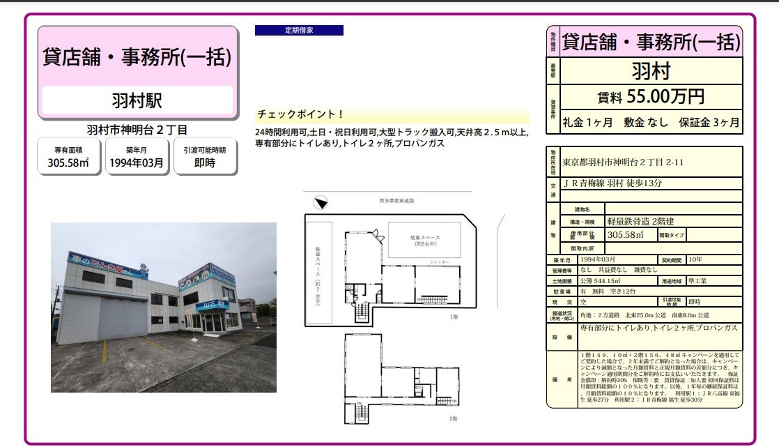 東京都羽村市神明台2-2-11 (羽村) 羽村 事務所 詳細データ