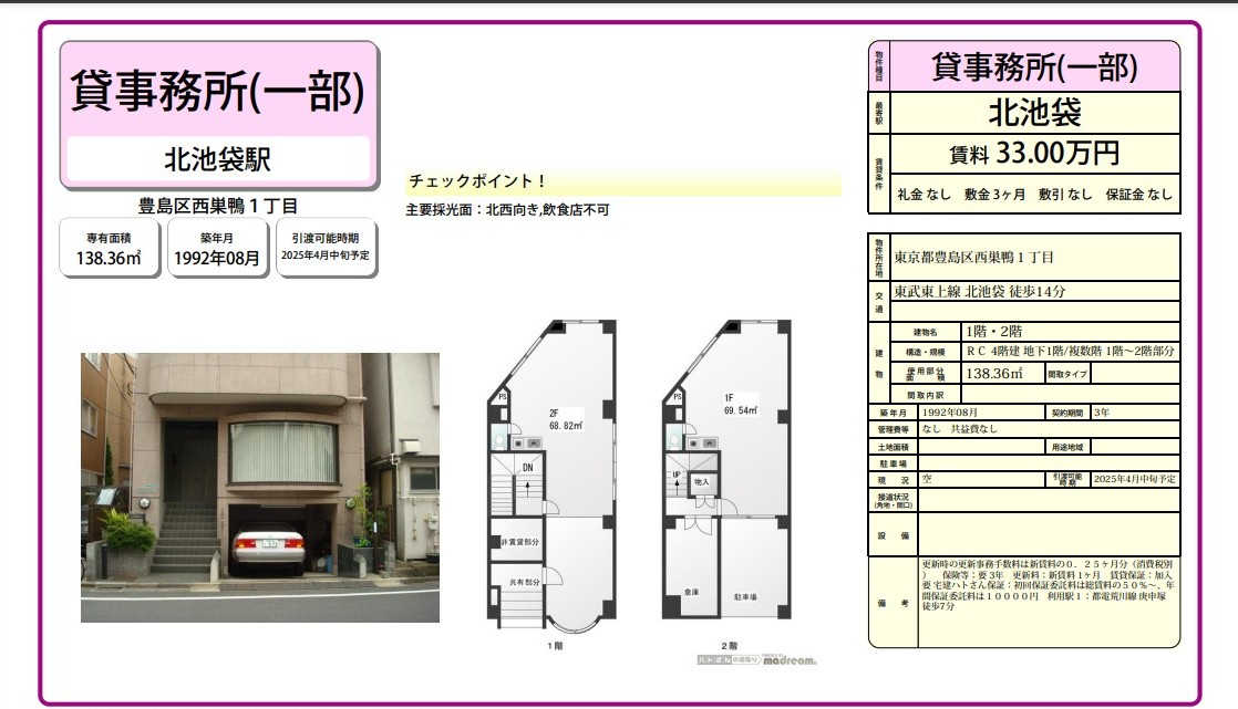 東京都豊島区西巣鴨1丁目 (北池袋) 北池袋 事務所 詳細データ