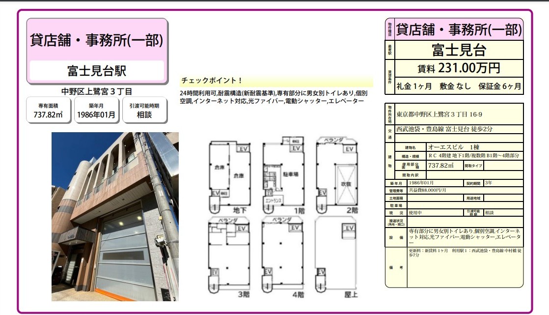 | 備考 | 24時間利用可耐震構造(新耐震基準) 条件交渉ご相談ください。 |