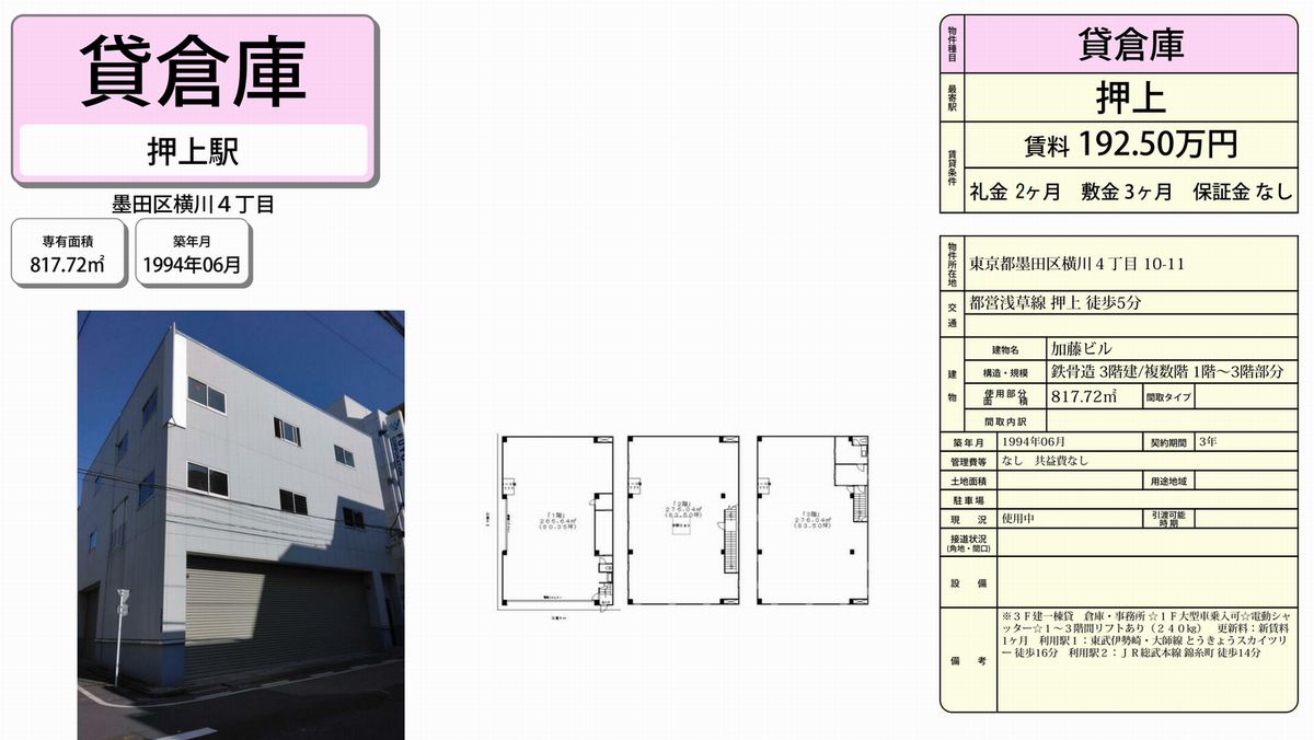 東京都墨田区横川4-10-11 (押上) 加藤ビル 一棟貸 詳細データ