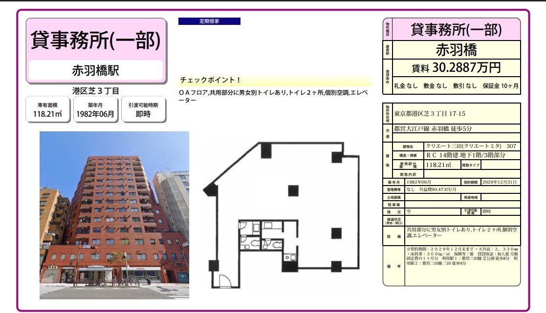 東京都港区芝3-17-15の賃貸事務所(貸事務所)・貸店舗をお探しのお客様へご案内-このたびは首都圏最大級、貸事務所・貸店舗専門ポータルサイトの東京オフィスMOVEをご利用いただき誠に有り難うございます。事務所移転、飲食店開業や新規独立まで賃貸事務所・賃貸オフィス・貸店舗の仲介実績豊富なスタッフがフルサポート致します。東京都港区芝3-17-15の大型駐車場付貸事務所、重飲食、美容院や居抜き店舗、レンタルオフィスまで貸事務所(賃貸事務所)、貸店舗を簡単に検索できます!東京都港区芝3-17-15でSOHO、賃貸オフィス、一棟ビルの貸事務所の貸主・オーナー様には無料にて広告掲載いたしますので是非、お問い合わせください。その他、東京都港区芝3-17-15で貸事務所・貸店舗をお探しのテナント様にはフリーレント、引越しサービスやオフィスレイアウトもアドバイス出来ますのでご相談ください。