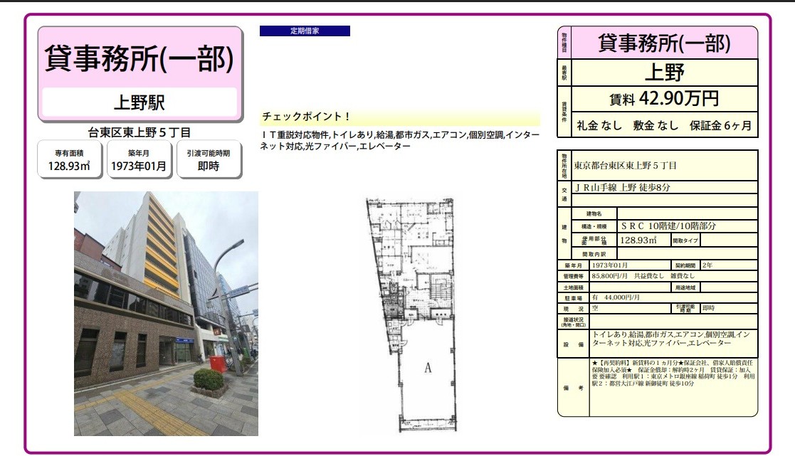 東京都台東区東上野5丁目 (上野) 上野 事務所 詳細データ