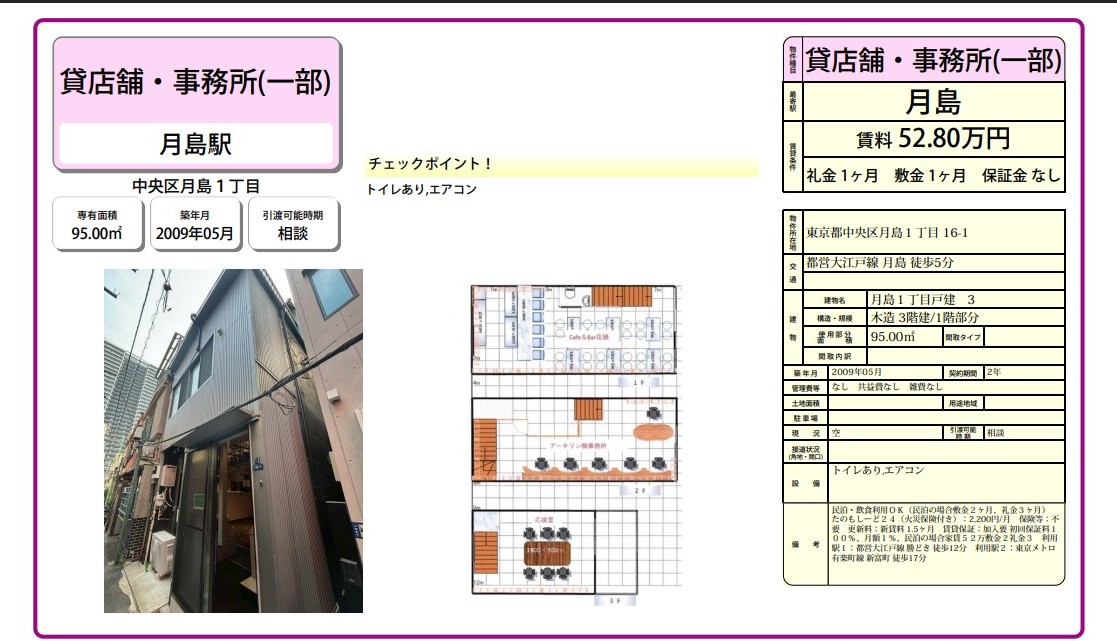東京都中央区月島1-16-1 (月島) 月島1丁目戸建 詳細データ