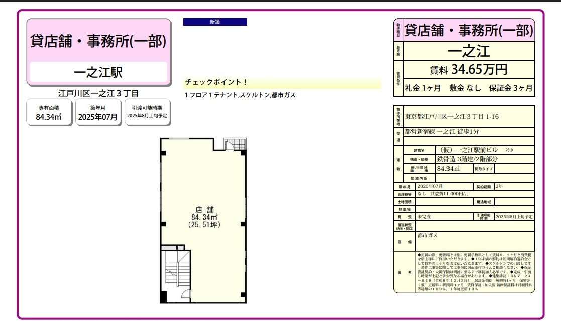 東京都江戸川区一之江3-1-16 (一之江) (仮)一之江駅前ビル 詳細データ