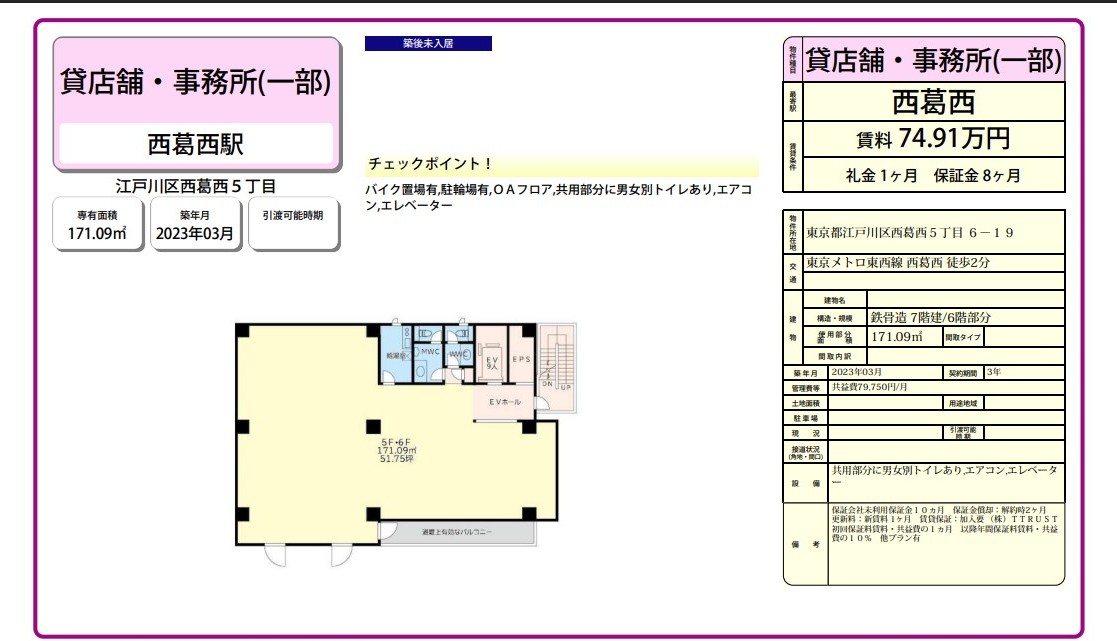 東京都江戸川区西葛西5-6-19 (西葛西) 西葛西 事務所 詳細データ