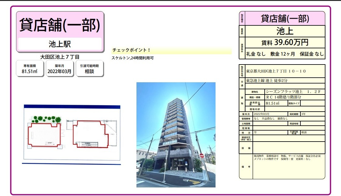 築浅物件業種相談可物販、サービス店舗保証会社必須メゾネットの物件です