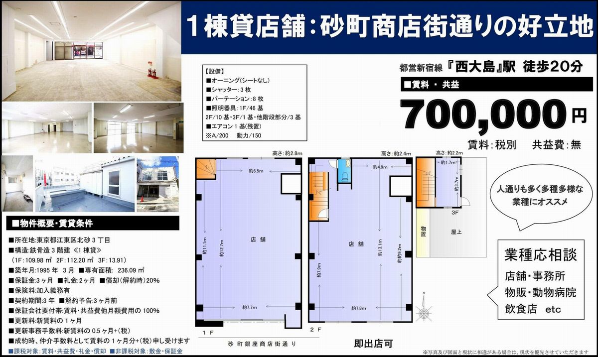 東京都江東区北砂3-38 (西大島) 西大島 店舗倉庫 詳細データ