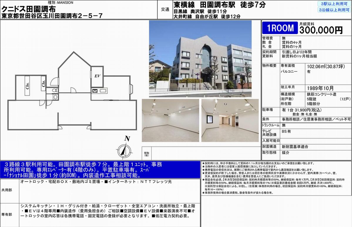 東京都世田谷区玉川田園調布2-5-7 (田園調布) クニドス田園調布 詳細データ