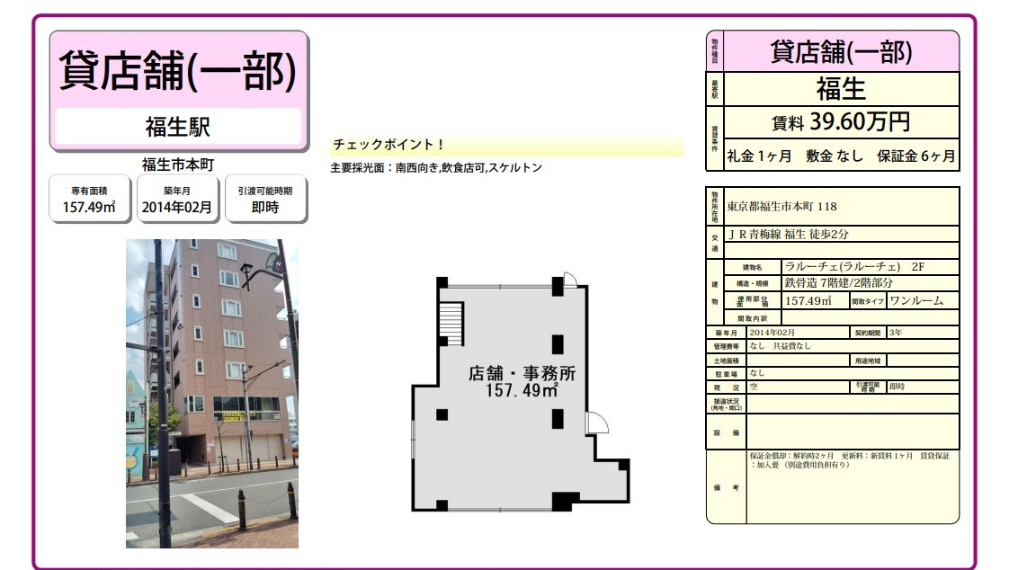 | 備考 | 飲食店可スケルトン 条件交渉ご相談ください。 |