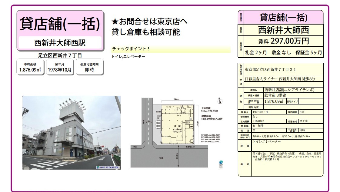 東京都足立区西新井7-2-4 (西新井大師西) 西新井店舗(ニシアライテンポ) 詳細データ