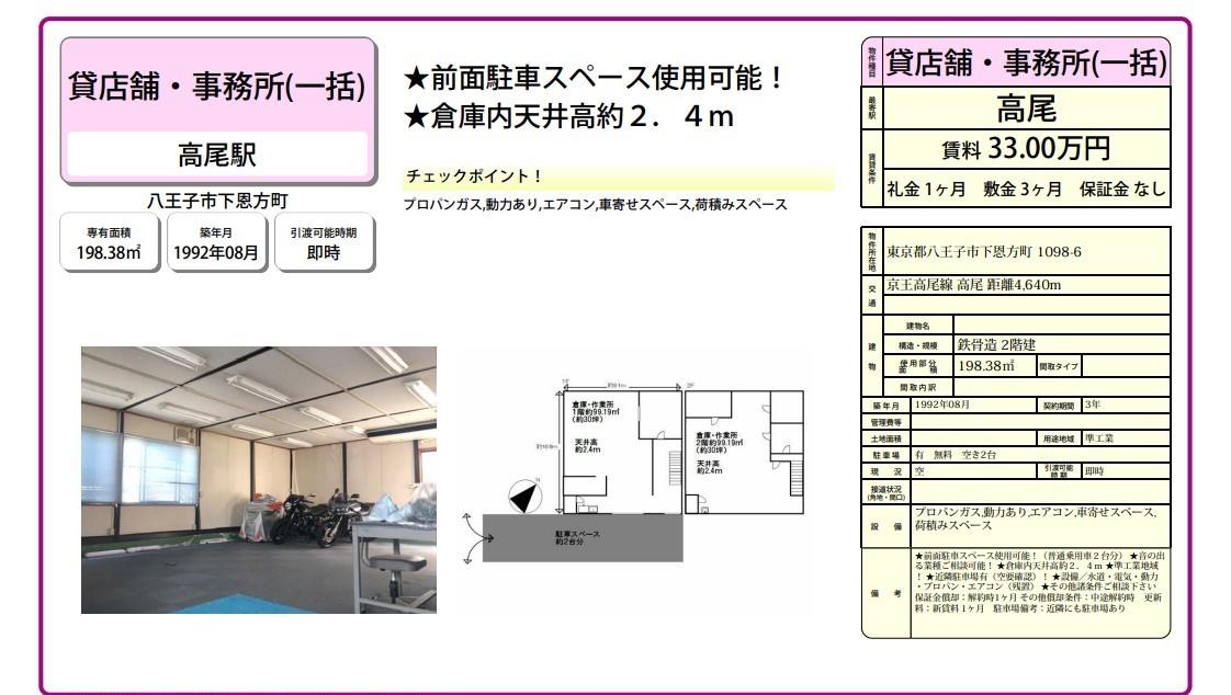 東京都八王子市下恩方町1098-6 (高尾) 高尾 事務所 詳細データ