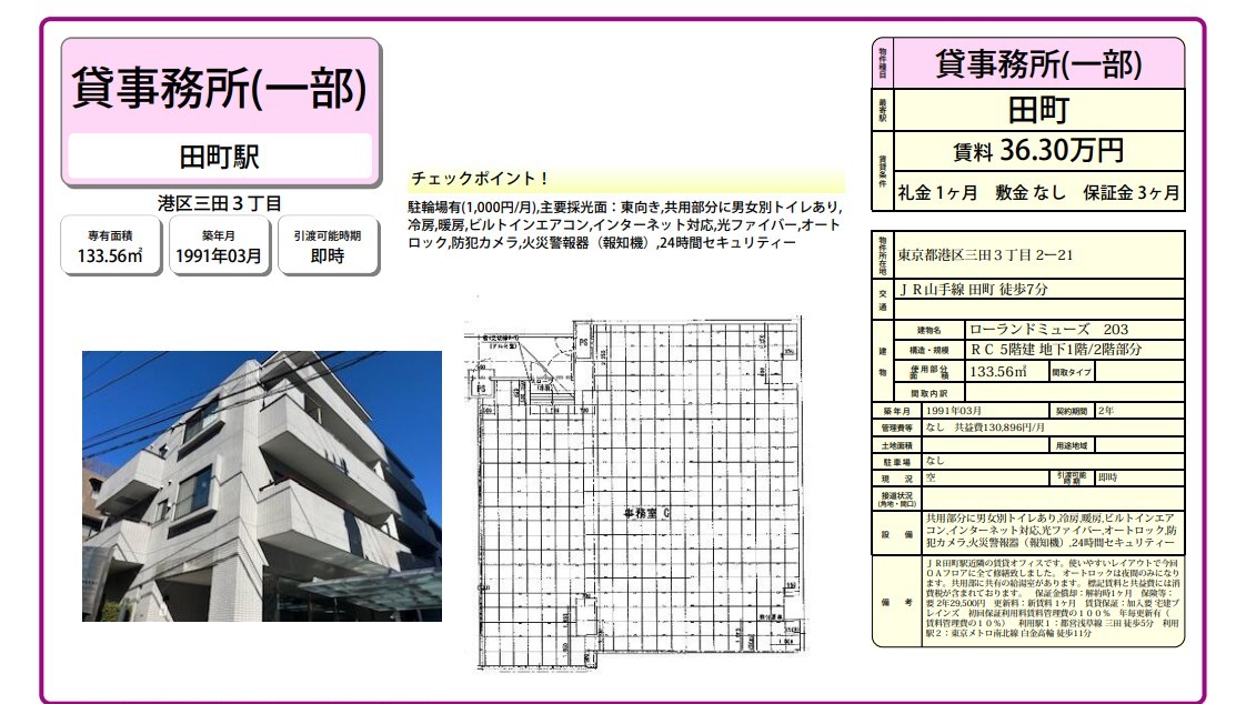 東京都港区三田3-2ー21の賃貸事務所(貸事務所)・貸店舗をお探しのお客様へご案内-このたびは首都圏最大級、貸事務所・貸店舗専門ポータルサイトの東京オフィスMOVEをご利用いただき誠に有り難うございます。事務所移転、飲食店開業や新規独立まで賃貸事務所・賃貸オフィス・貸店舗の仲介実績豊富なスタッフがフルサポート致します。東京都港区三田3-2ー21の大型駐車場付貸事務所、重飲食、美容院や居抜き店舗、レンタルオフィスまで貸事務所(賃貸事務所)、貸店舗を簡単に検索できます!東京都港区三田3-2ー21でSOHO、賃貸オフィス、一棟ビルの貸事務所の貸主・オーナー様には無料にて広告掲載いたしますので是非、お問い合わせください。その他、東京都港区三田3-2ー21で貸事務所・貸店舗をお探しのテナント様にはフリーレント、引越しサービスやオフィスレイアウトもアドバイス出来ますのでご相談ください。 |